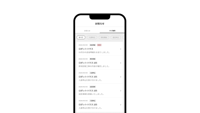 新規入居から契約開始、退去、原状回復工事に至るまで、賃貸経営に必要な情報を通知。抜け漏れの心配がありません。
