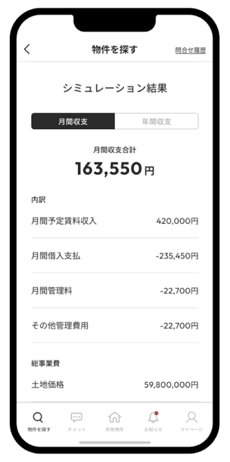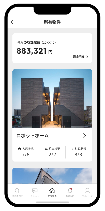 入居者専用アプリで外出先から訪問者の応対や、家電の操作が遠隔で行えます。入居者満足度を高めることが、結果的に投資家の資産形成につながります。